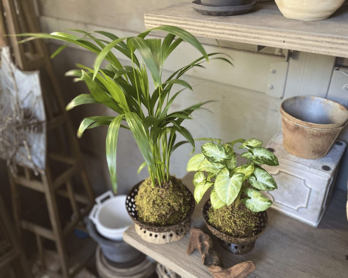 こちらは、くらうまらしく観葉植物の苔玉に仕上がっています。 一般的な苔玉よりも洋風なインテリアに馴染みやすいですね。